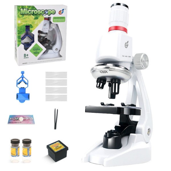 - A standard model for kids and beginners microscope set. 3 magnifications can be adjusted to 100x, 400x, and 1200x. This microscope set is recommended for young children, elementary school, middle school, high school students or beginners to develop curiosity and scientific exploration