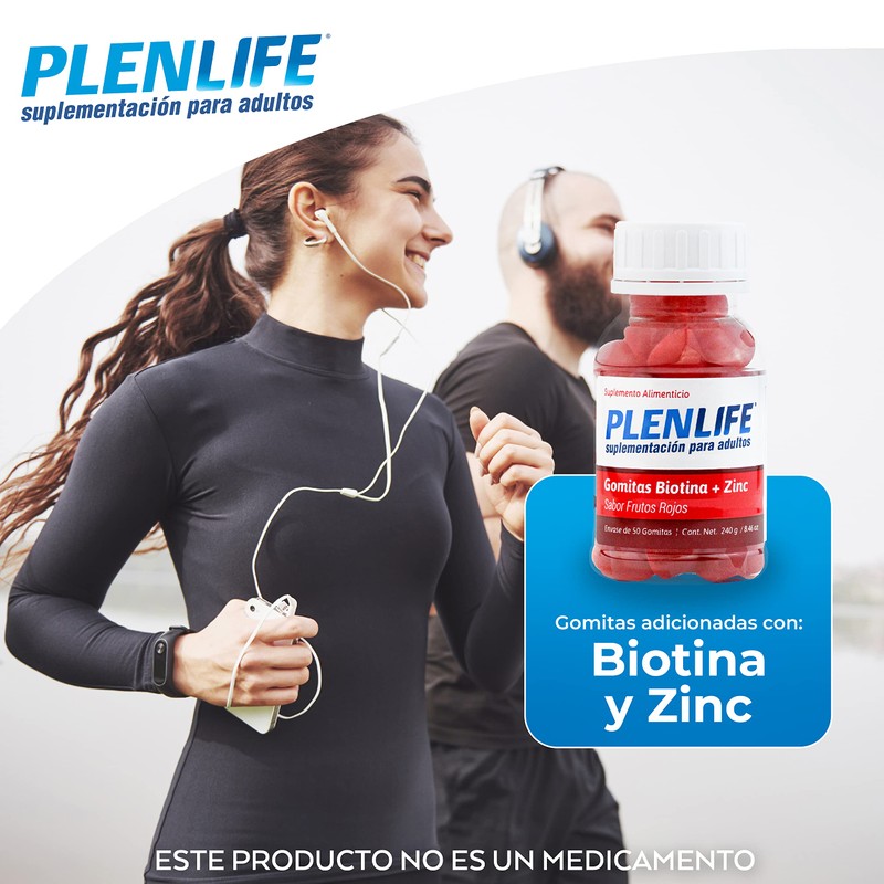 PLENLIFE - Gomitas con Biotina y Zinc - Suplemento sin Azúcar Sabor Frutos Rojos - Frasco con 50 Gomitas / 240 Gramos