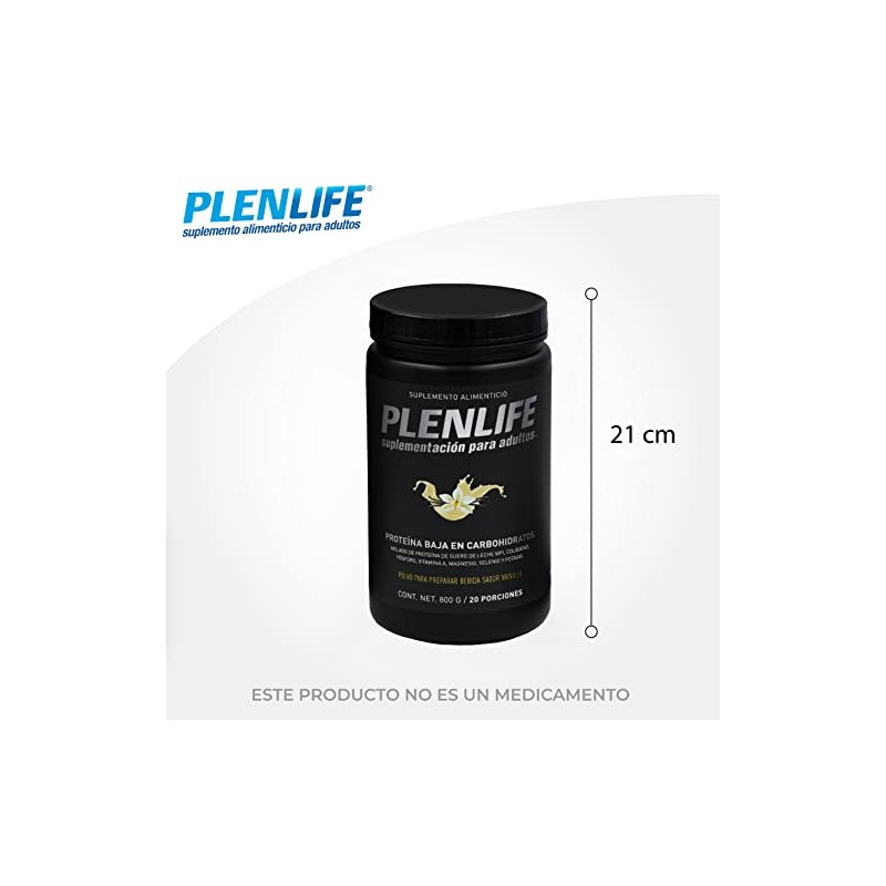 PLENLIFE - Suplemento Alimenticio en Polvo - Proteína Baja en Carbohidratos - Bote con 800 Gramos (800 gramos, Vainilla)