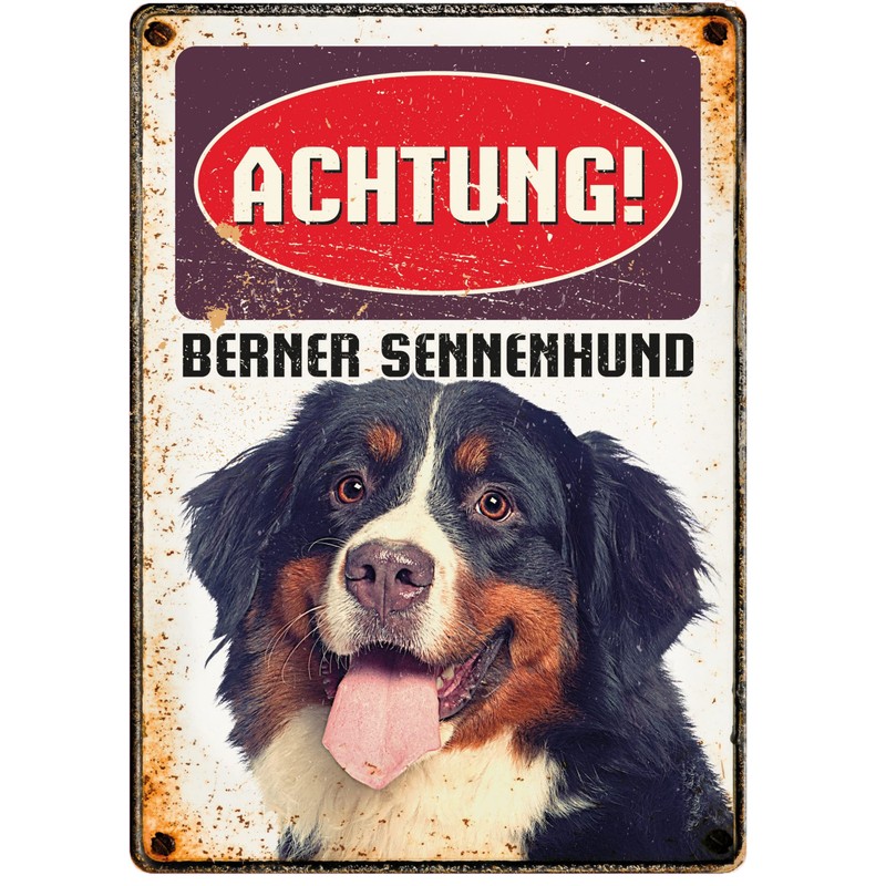 Plenty Gifts Metal Sign Vintage Caution Bernese Mountain Dog