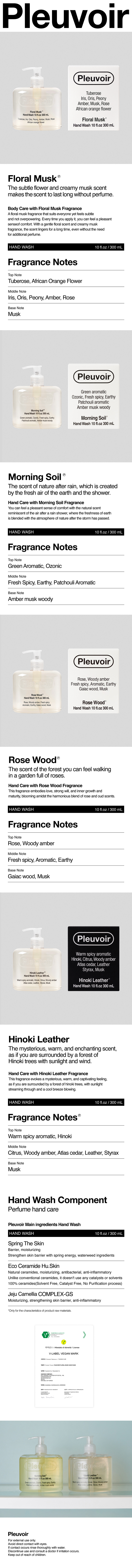 - Cosmetics manufacturers, cosmetics responsible distributors, and customized cosmetics sellers: [Floral Musk, Morning Soil, Hinoki Leather] Cosmetics Manufacturer: Outin Futures Co., Ltd., Distributor: U & I Story Co., Ltd. [Rose Wood] Cosmetics Manufacturer: Outin Futures Co., Ltd., Distributor: Hasin Co., Ltd.