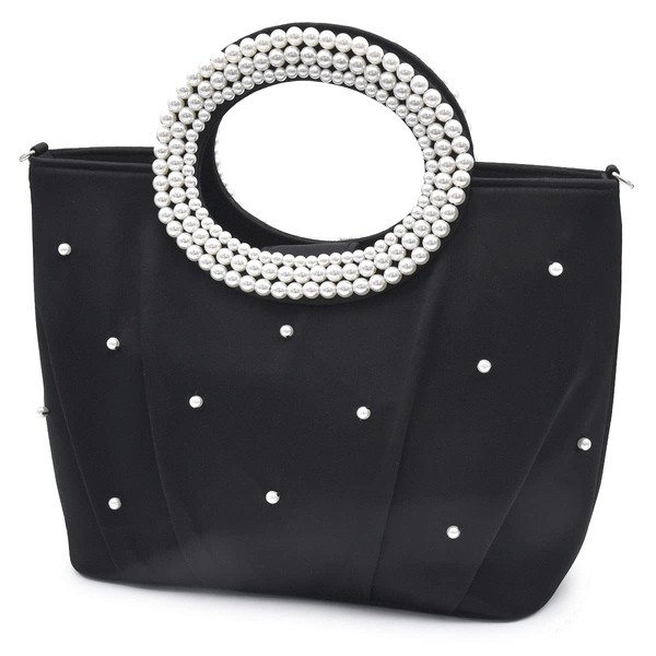 Plex Women's 2-Way Pearl Handle Party Bag, For Weddings, Large, Beaded Tote, Black