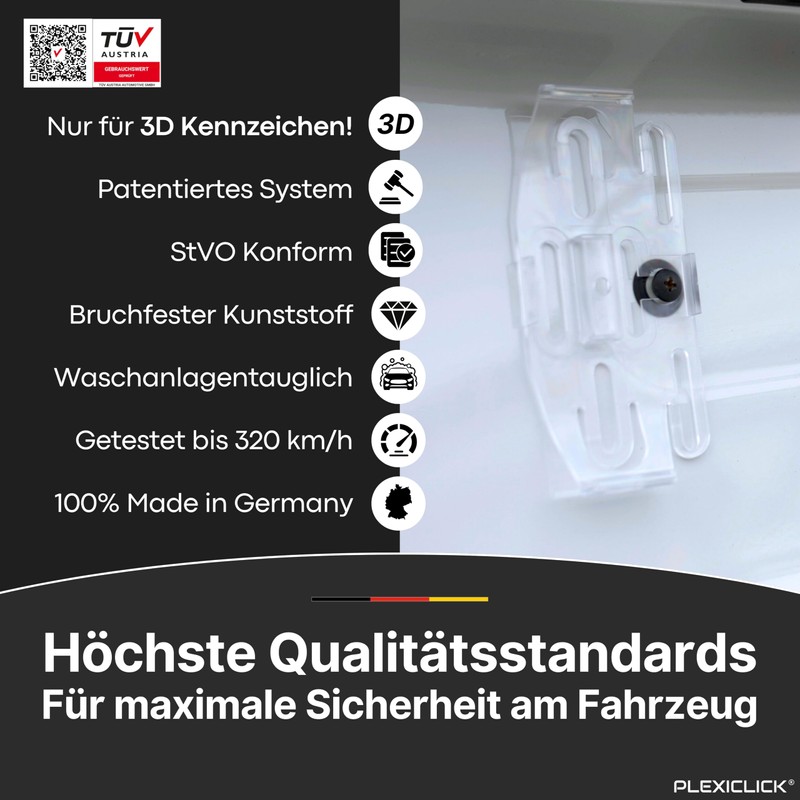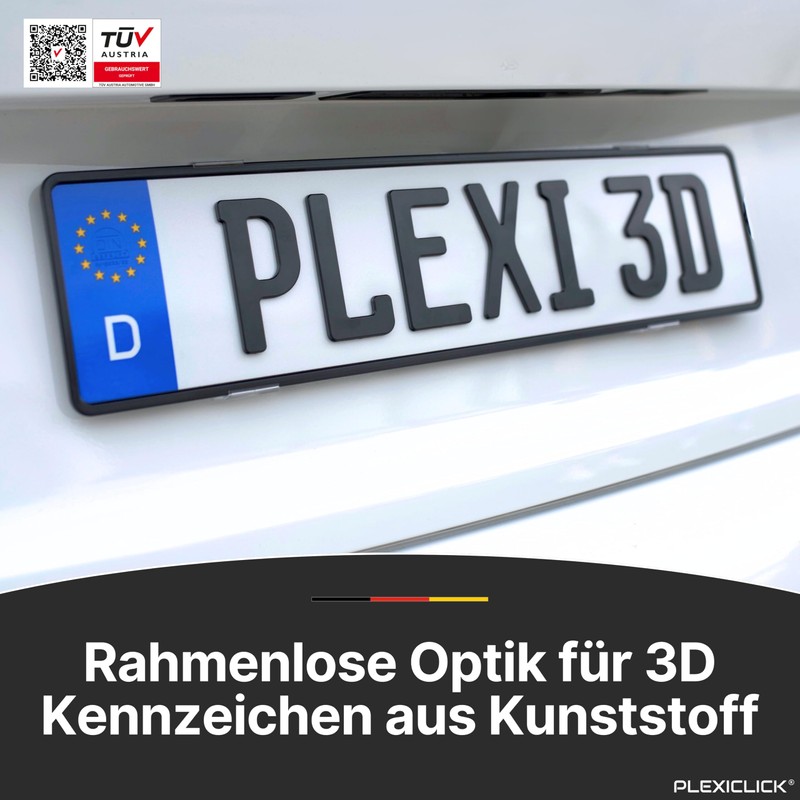 - License Plate Holder for 3D License Plate - Our Plexiclick 3D License Plate Holder is specially designed for secure and perfect mounting of 3D license plates to your car.