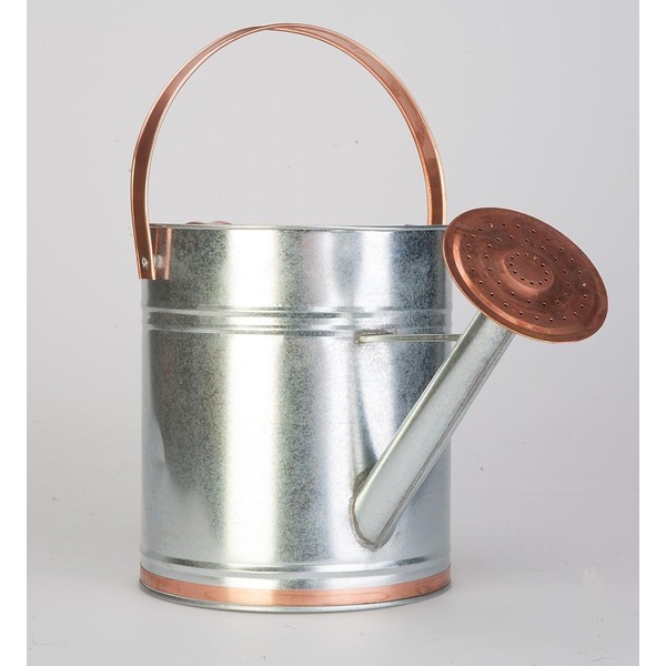 Plexon 2 Gallon Copper/Silver Galvanized Steel Watering Can, 9.5" D x 20.5" W x 14.5" H