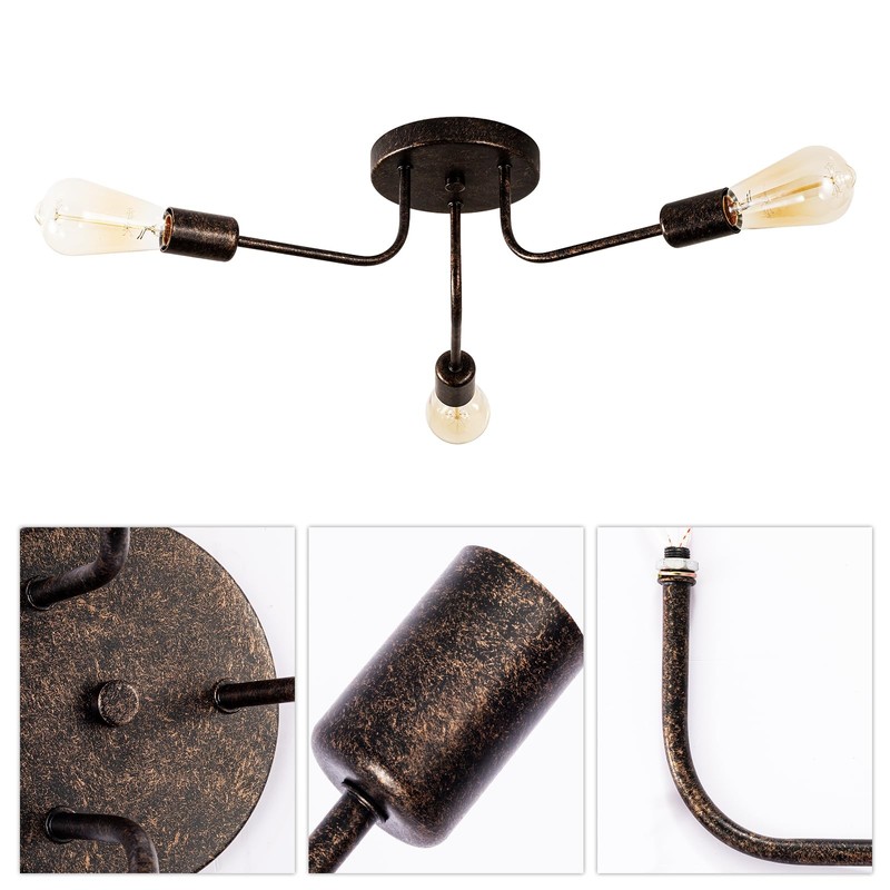 Plfann Industrial Semi Flush Mount Ceiling 3 Light with Adjustable Metal Branched Vintage Ceiling Light E26 Holder (Bronze)(Bulb NOT Included)