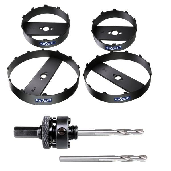 PLG2SUPT 4 4-3/8 6-3/8 6-7/8” Carbide Grit Hole Saw Cutter for 6 5 4” Recessed Light Segmented Cutting Edge 4X Faster Than Bi-Metal Hole Saw Cutting Drywall Ceiling Tile Wood Plaster MDF Drywall