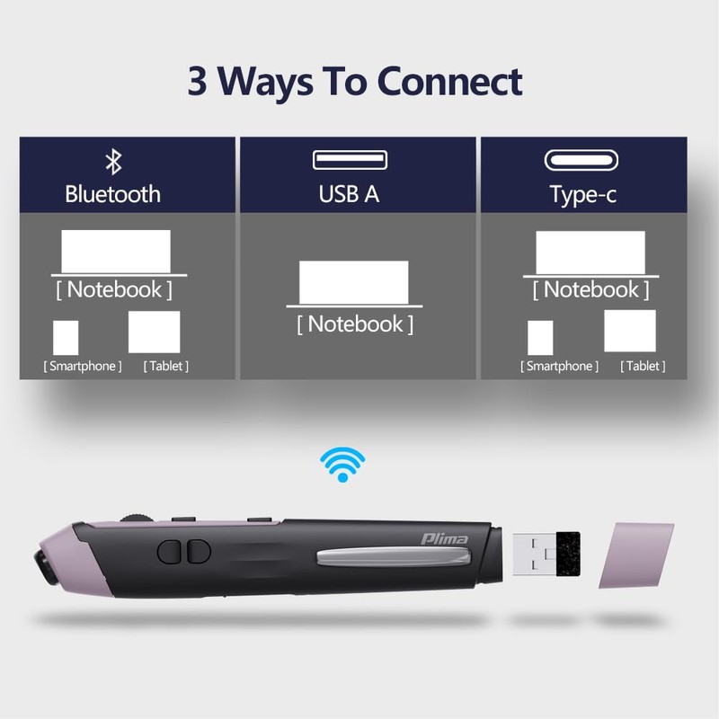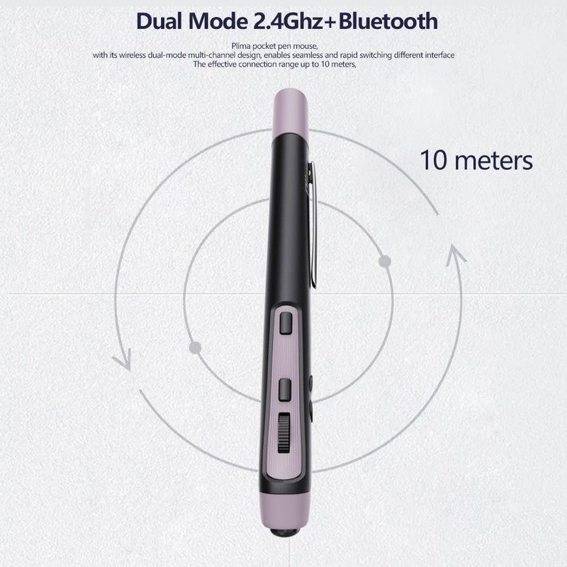 - 【Dual-Mode 2.4G+BT】 Plima Computer Mouse Pen, with its wireless dual-mode multi-channel design, enables seamless and rapid switching, preventing interference. The effective connection range extends up to 10 meters, enhancing flexibility and convenience for users.