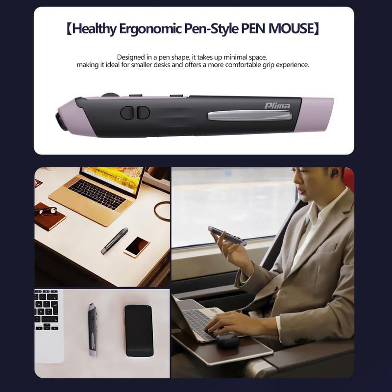 Plima Patent, Intuitive Pen-tip Press-Down Function Equivalent to The Left Mouse Button,Pocket Ergonomic Dual Mode 2.4+BT Pen Mouse 2.0 Vertical Mice, Support Windows, Android,Linux, Mac OS(Purple)