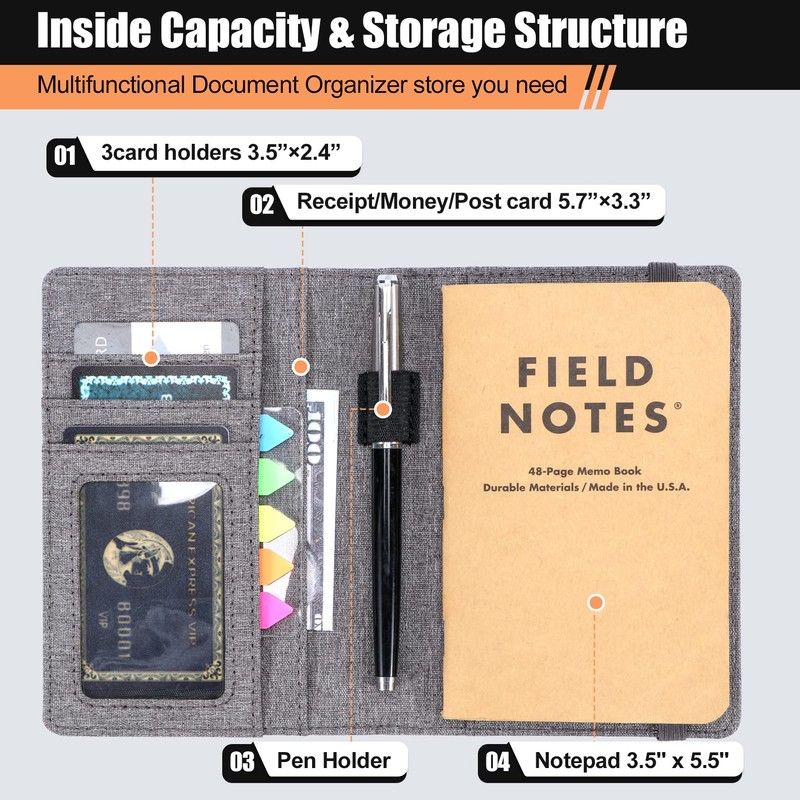 - 3【Compatible & Lightweight】 This field notes cover fits all 3.5" x 5.5" notebooks, Moleskine Cahier Journal and other notebooks of similar size. The lightweight design makes this notebook cover comfortable to carry and easily fit in your pocket.