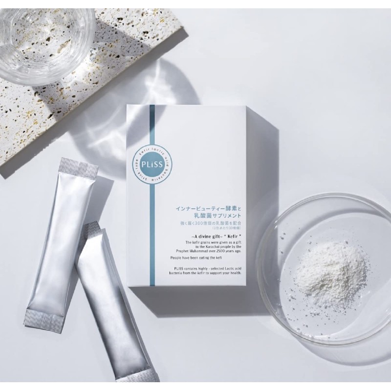 - 乳酸菌というとキムチやヨーグルトなどが挙げられますが、多くの種類の酵素や乳酸菌をバランス良く摂り続けることは決して安易ではありません。PLiSSは7種類の乳酸菌ケフィアに加え、121種類の漢方並みの植物発酵酵素と3種の麹菌で体の内側から美と健康を導きます。
