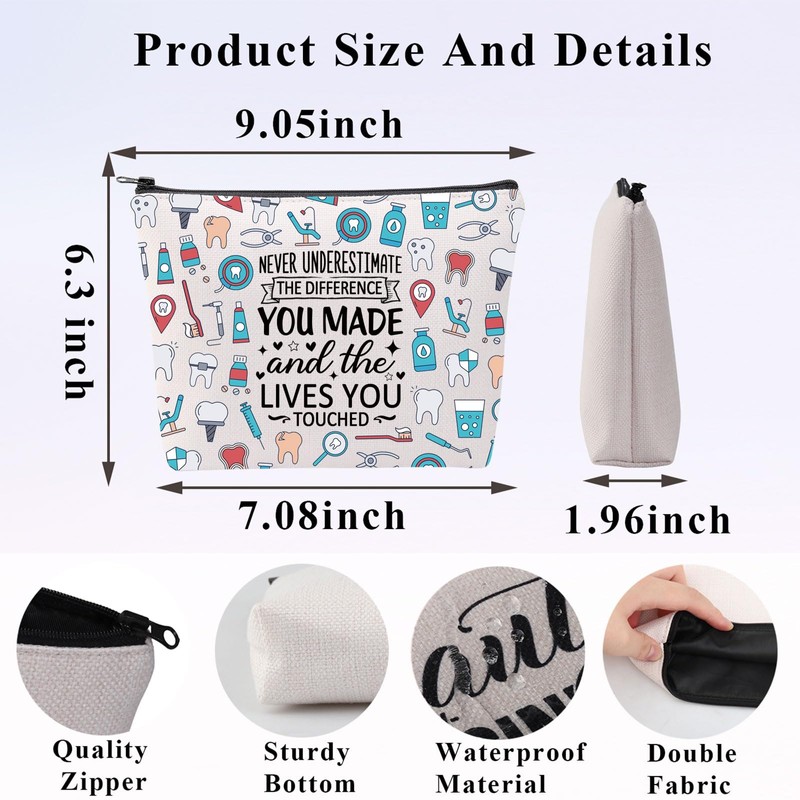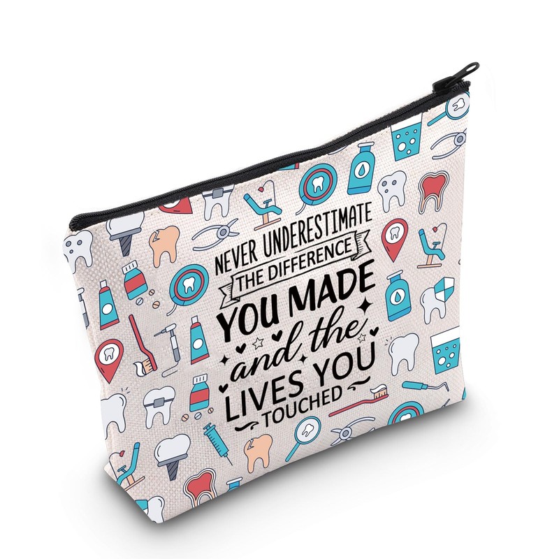 PLITI Dentist Gift, Never Underestimate the Difference You Made and the Life You Touched, Dental Makeup Bag for DH, Touched Dentist Bagu, Fashionable