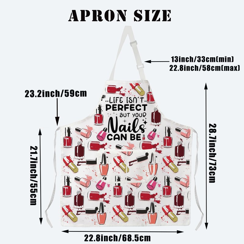 - Apron with Lettering: LIFE ISN'T PERFECT BUT YOUR NAILS CAN BE. Perfect for manicurists, salon owners, beauticians, nail technicians.