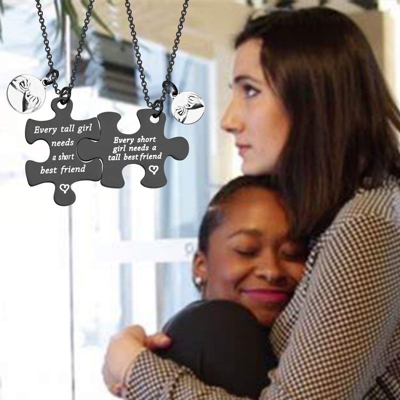 - ❥BEST FRIEND PUZZLE NECKLACE SET OF 2 - Two best friends, there will always be a tall friend and short friend. Tall one, is full of responsibility and become your powerful supporter.Short one, brings funny joke and will be never boring with her. Two good friends, one funny combo.