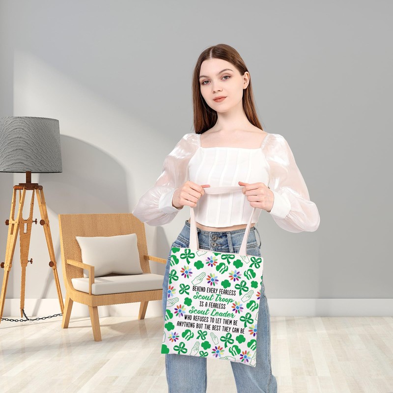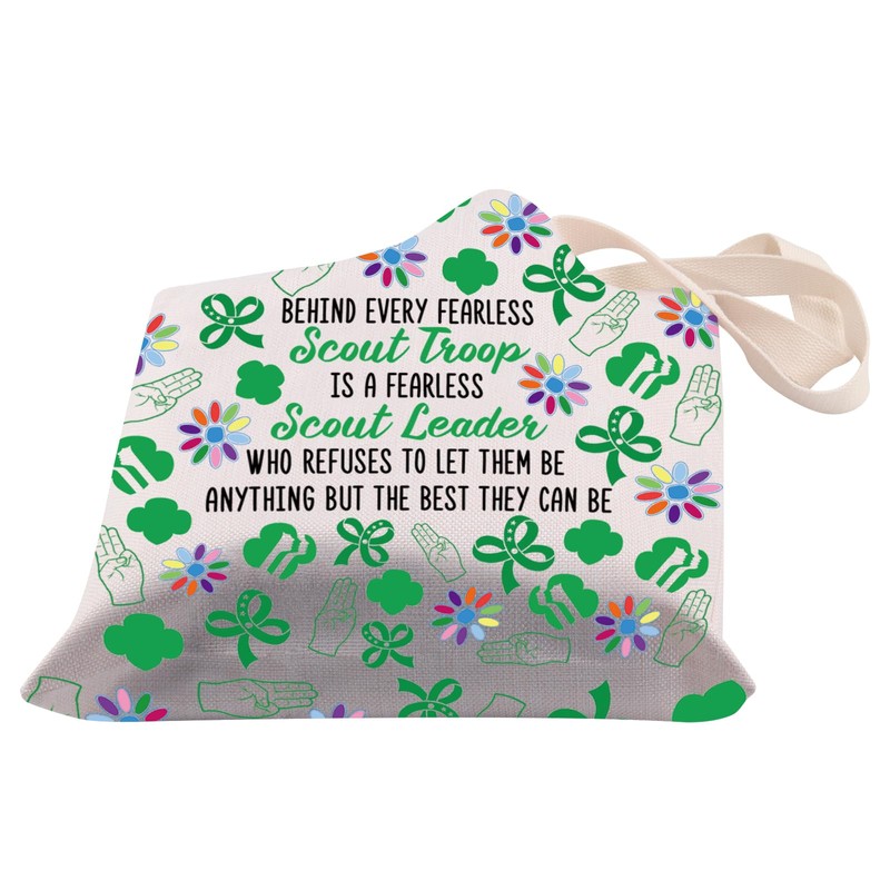 - Bag with Girl Scout Quote: BEHIND EVERY FEARLESS SCOUT TROOP IS A FEARLESS SCOUT LEADER WHO REFUSES TO LET THEM BE ANYTHING BUT THE BEST THEY CAN BE. Great tote bag to Girl Scout Leader, Scoutmaster, Scout Girl and Scout Troop Leader as thank you gifts or Appreciation Gift !