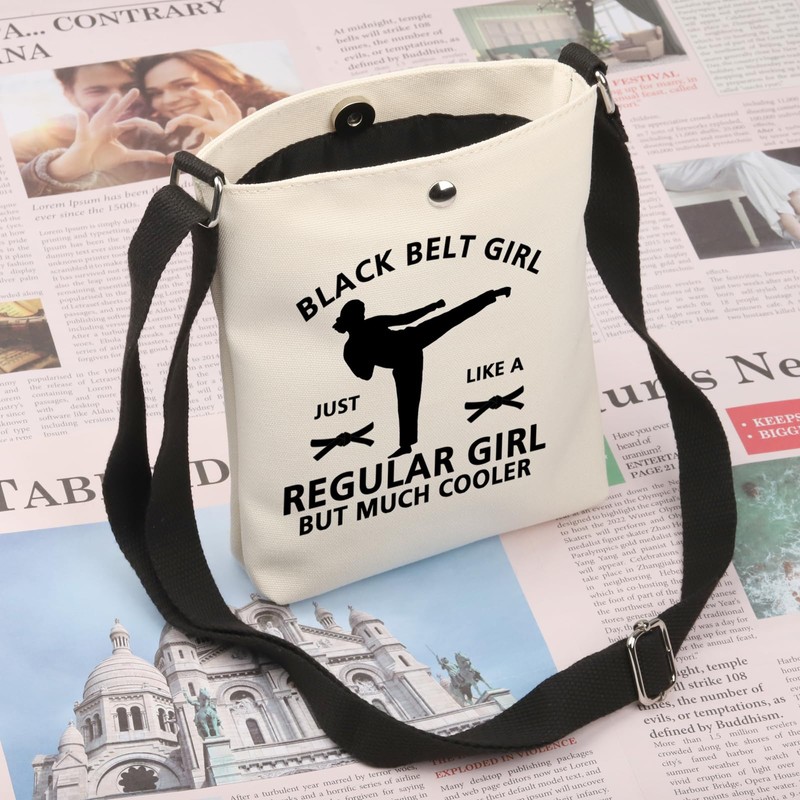 PLITI Taekwondo Gifts Karate Black Belt Gifts Black Belt Girl Just Like a Regular Girl But Much Cooler Crossbody Bag, Black Beltgc Cbagu