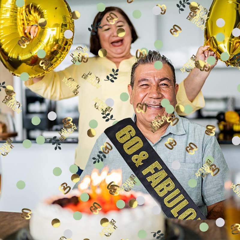 PLLDVEFD 100 Pieces Of Sixty Birthday Confetti, 1 Piece Of Sixty Shoulder Strap, Creative Party Table Decoration, Sprink Confetti, 60 Party Decoration.