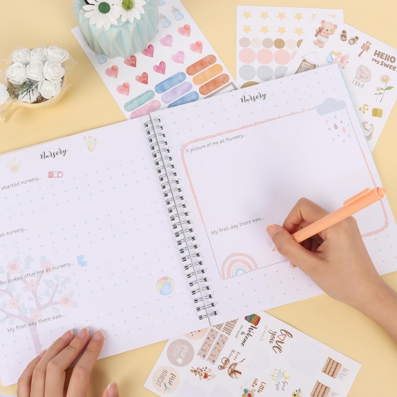 - COMPLETE BABY MEMORY BOOK SET: You will receive 1 baby memory book and 4 adorable stickers, perfect for capturing and decorating your baby's precious milestones and memories. Capture your baby’s first smiles, steps, and words with our baby memory book with stickers.