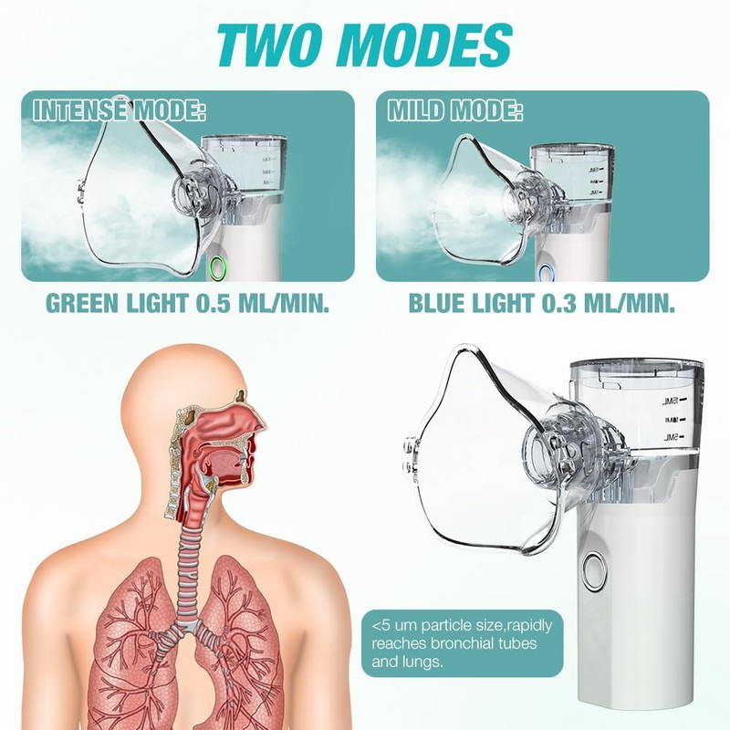 - [Zwei Zerstäubungsmodi] Das Inhalationsgerät für Erwachsene und Kinder verfügt über einen eingebauten intelligenten Chip und eine 2-stufige einstellbare Zerstäubungsgeschwindigkeit, Der leistungsstarke Modus eignet sich für Erwachsene, die eine schnelle Linderung von Atemproblemen benötigen. Der milde Modus eignet sich für ältere Menschen und Kinder und ist leichter zu absorbieren.