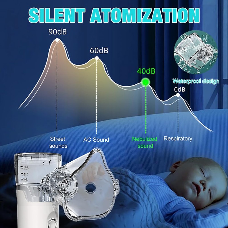 - [Leiser Betrieb] Das Betriebsgeräusch der Inhalationsgerät für Erwachsene und Kinder beträgt nur 40 Dezibel. Bei nächtlicher Verwendung wird der Schlaf anderer nicht gestört. Es kann im Büro oder auf Geschäftsreisen verwendet werden, ohne dass es auffällt.