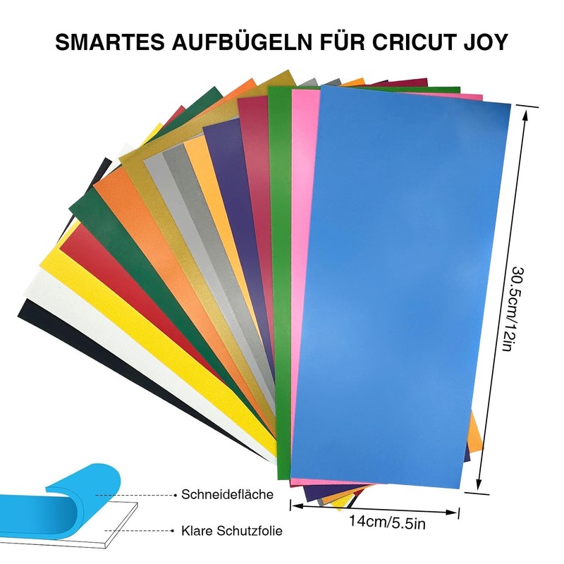 Plotter Film Textile, Pack of 15, Flex Film Vinyl, 30.5 x 14 cm, Smart Vinyl Permanent for Cricut Joy, for Cricut and Silhouette Cameo, Used in Textiles Transfer Film for Iron-On DIY Fabric and Shirt