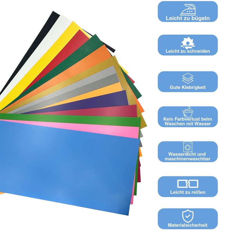 Machine washable & durable: our HTV vinyl has a bright colour. Even after repeated washing in the washing machine, no marks are left behind, no fading, no falling off.