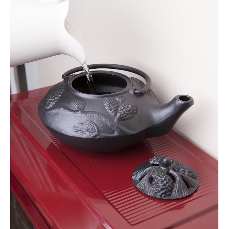 Pinecone Wood Stove Kettle Steamer| Solid Cast Iron| Matte Black Finish| Rust Resistant| Decorative Functional Alternative to Electric Humidifiers| 2.5 QT Capacity| 11.25" L x 9" W x 6" H