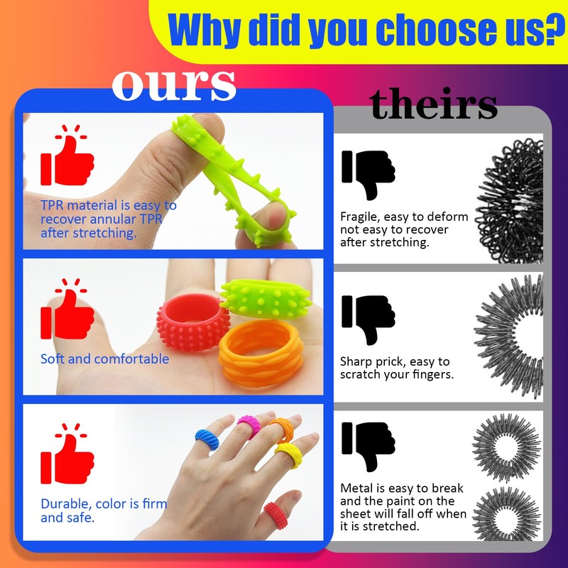- 【Hochwertiges Material】: Unsere beruhigenden stress ring und Armbänder bestehen aus hochwertigem Silikonmaterial, das sich angenehm anfühlt und widerstandsfähig gegen Ziehen, Drehen und Quetschen ist. Sie sind langlebig und reißfest und sorgen für lang anhaltendes Vergnügen, während sie Ihnen helfen, sich auf Ihre Aufgaben zu konzentrieren.