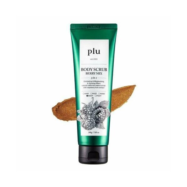 - A body exfoliator with a sweet scent of berries - A 3-in-1 skincare product with California walnut to exfoliate, moisturize, and rejuvenate the skin for a glowing complexion - Dermatologist-tested (soft formula)