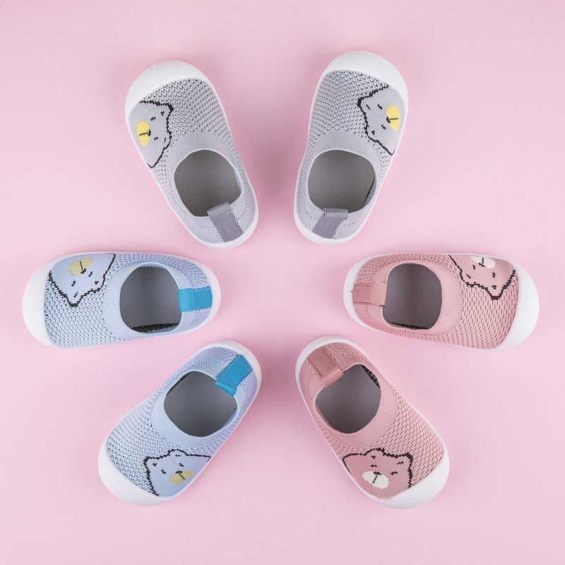 Pluatyep Baby Toddler First Walking Non-Skid Shoes Infant Boys Girls Soft Sole Fashion Breathable Knitted Mesh Socks Shoes Slip-on Slippers, A02-pinkbear, 9-12 Months Toddler