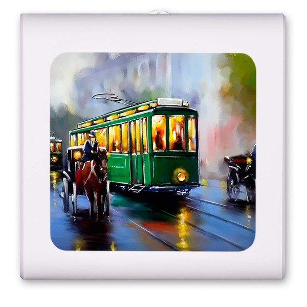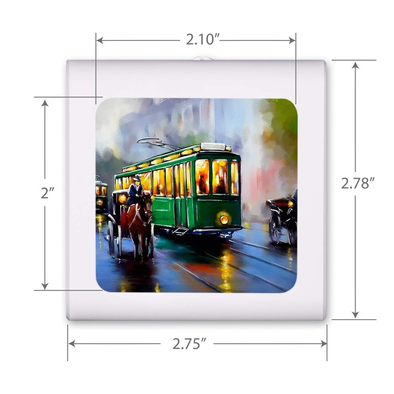 Plug in Dimmable LED Night Light with Dusk to Dawn Auto Sensor, Adjustable Brightness, Warm Light, Auto On-Off Nightlight for Bathroom, Hallway, Nursery, Bedrooms - Cable Car Painting