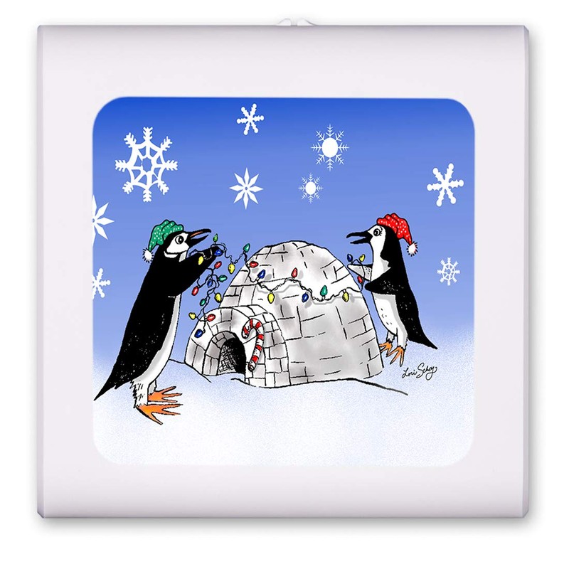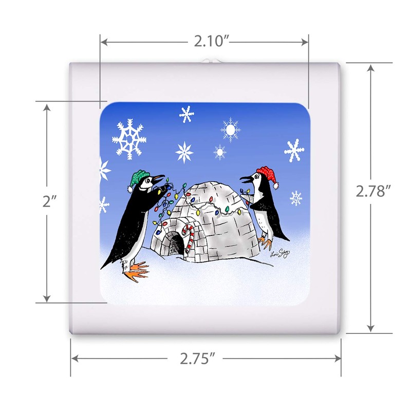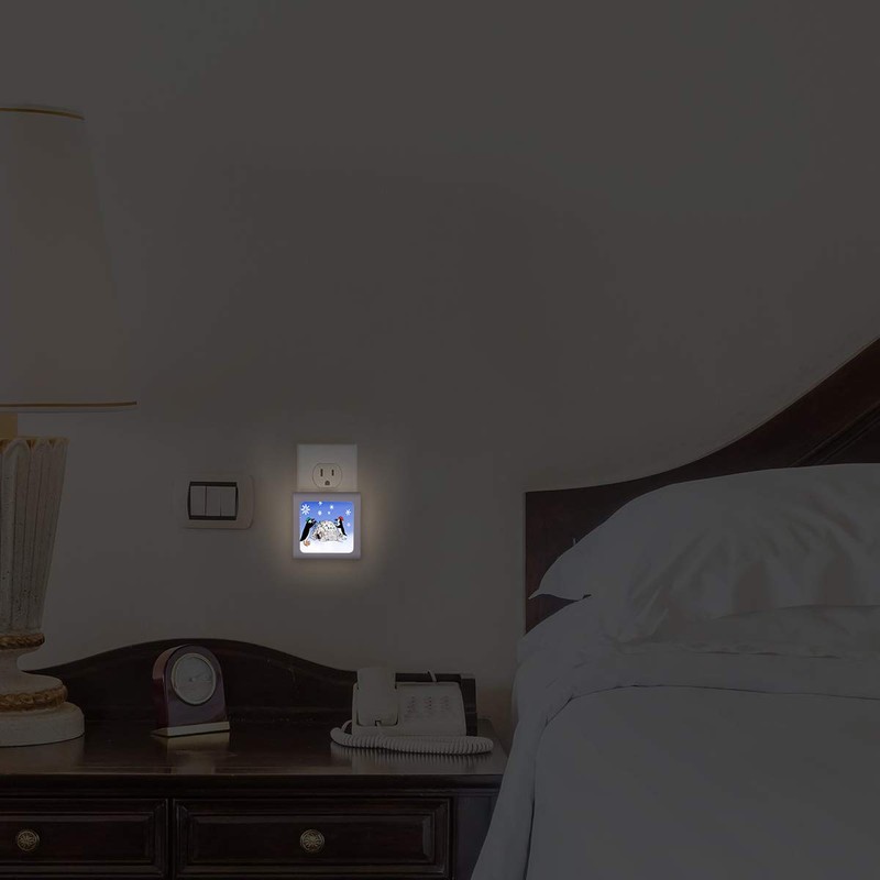 - ADJUSTABLE BRIGHTNESS - Our LED night light features a stepless adjustment slider to adjust the brightness from 0 LM to 15 LM. You’re able to set your desired brightness for different occasions to provide the best lighting experience. Beautifully printed Penguin Igloo image.