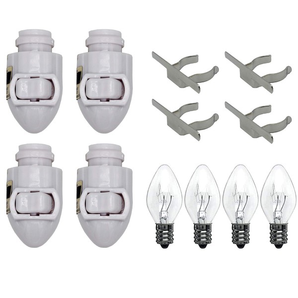 - Creative Hobbies Wholesale Pack of 4 White Night Light Sockets with Quality Rocker-type On/off Switch in Front and 4 watt night light bulbs. and 4 Metal Clips