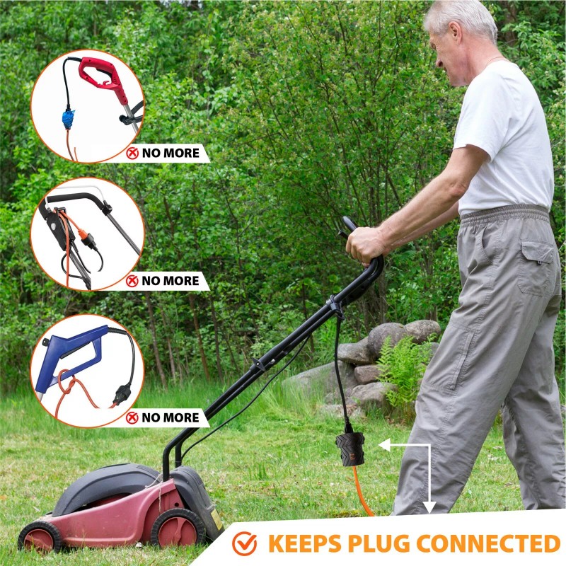 Plug-Tie Cord Safety Cover for Electrical Corded Lawn Equipment