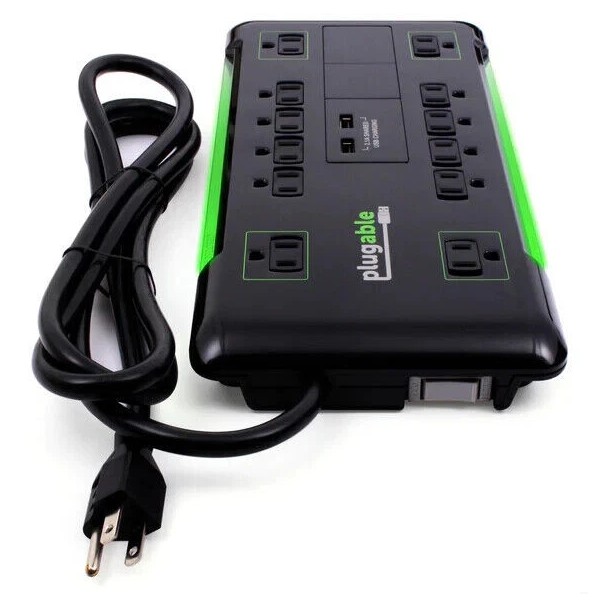 Plugable PS12-USB2B Surge Protector Power Strip with USB and 12 AC Outlets