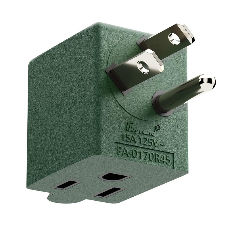 - Plugrand SKU#.: PA-0170R45G 15Amp 125Volt Nema 5-15P(USA 3-Prong Male) to 5-15R (3-Prong Female) Right angled ac power adapter,