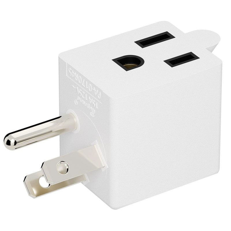 PluGrand Sku#.: PA-0170R45W White color Space Saving Adapter, AC direction changer power adapter, Molded design.