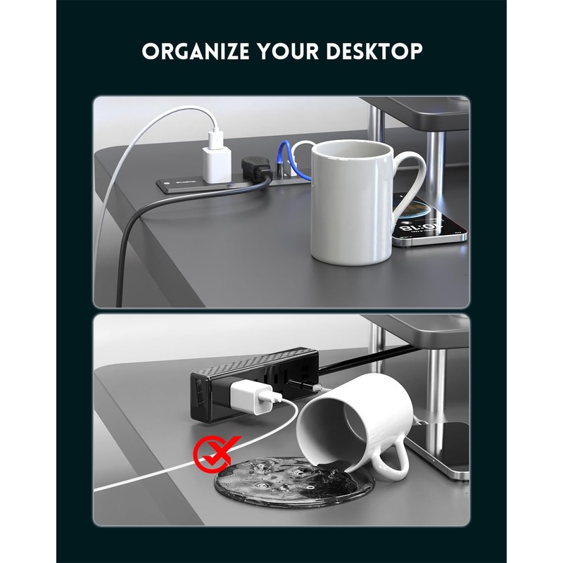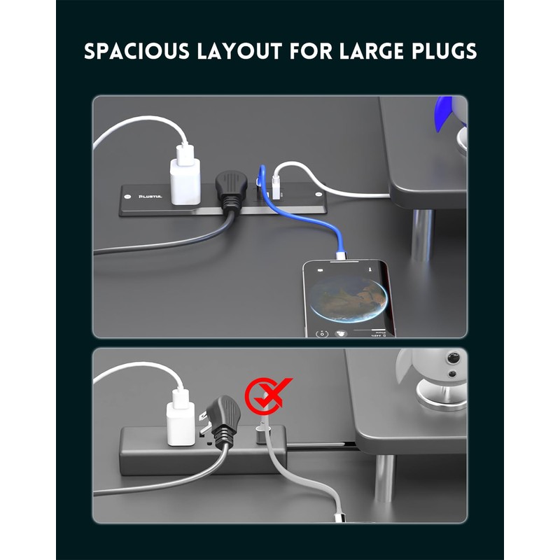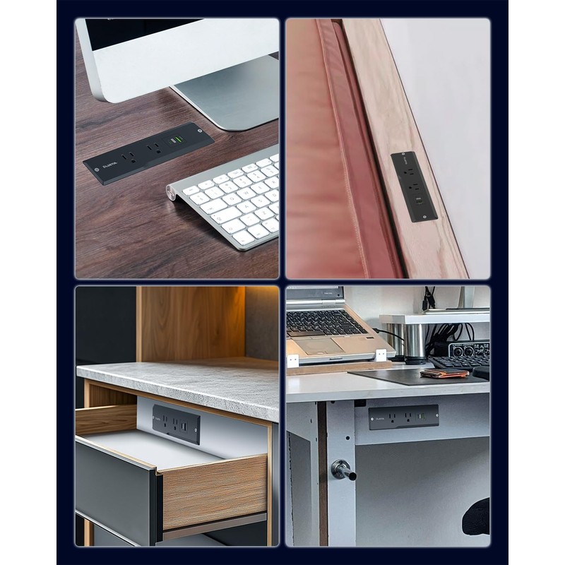- đăRecessed Power Strip with USB Portsă Equipped with 2 AC outlets, 1 USB-C port, and 1 USB-A ports, Suitable for conference tables, sofa tables, kitchens, bedrooms and more. The rich combination of configurations is an excellent addition to dining tables, furniture or drawer outlets