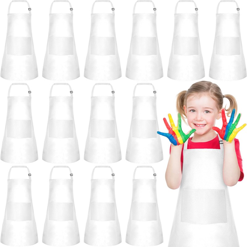 - CONSIDERATE DESIGN: Our kids white apron bulk design features two pockets in the front, making it convenient for kids to store brushes, pencils, or other tools while painting, cooking or crafting, effectively enhancing their hands-on abilities