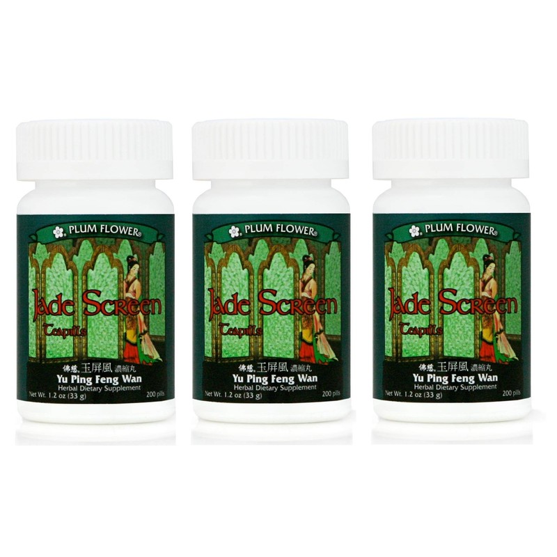 Plum Flower Jade Screen Teapills Yu Ping Feng Wan 3 Bottles of 200 Teapills/Bottle