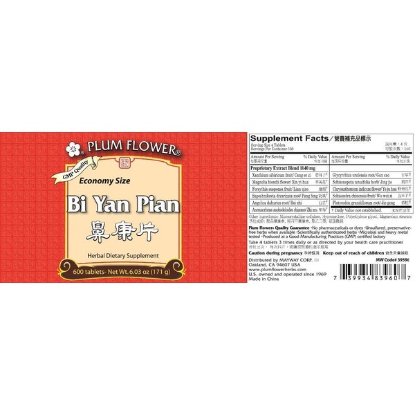 Plum Flower Bi Yan Tablets Economy Size 600 Tablets