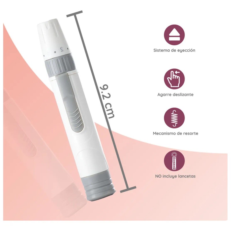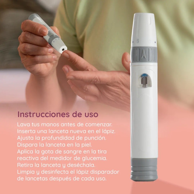 Nuestro Disparador de Lancetas es la herramienta ideal para obtener muestras de sangre de manera fácil, rápida y segura. Diseñado para funcionar con lancetas universales, este dispositivo es perfecto para aquellos que necesitan monitorear su nivel de glucosa con frecuencia, proporcionando un método cómodo y sin complicaciones para la punción.