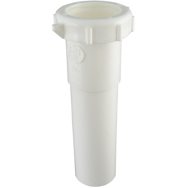 White Polypropylene 6-Inch extension tube with 1-1/2-Inch Inlet. All necessary nuts and washers are included.