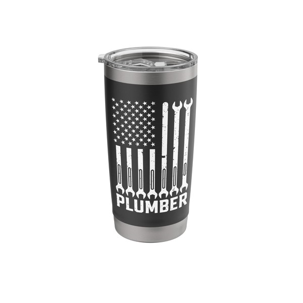 Plumber American Flag Plumbing 4th Of july Pipe Wrench Stainless Steel Insulated Tumbler