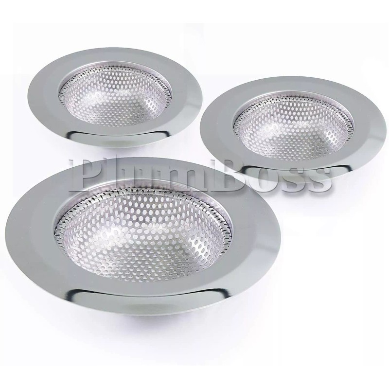 Plumboss Kitchen Sink Basket Strainer Drain Replacement Stainless Steel Large Rim 3 pack