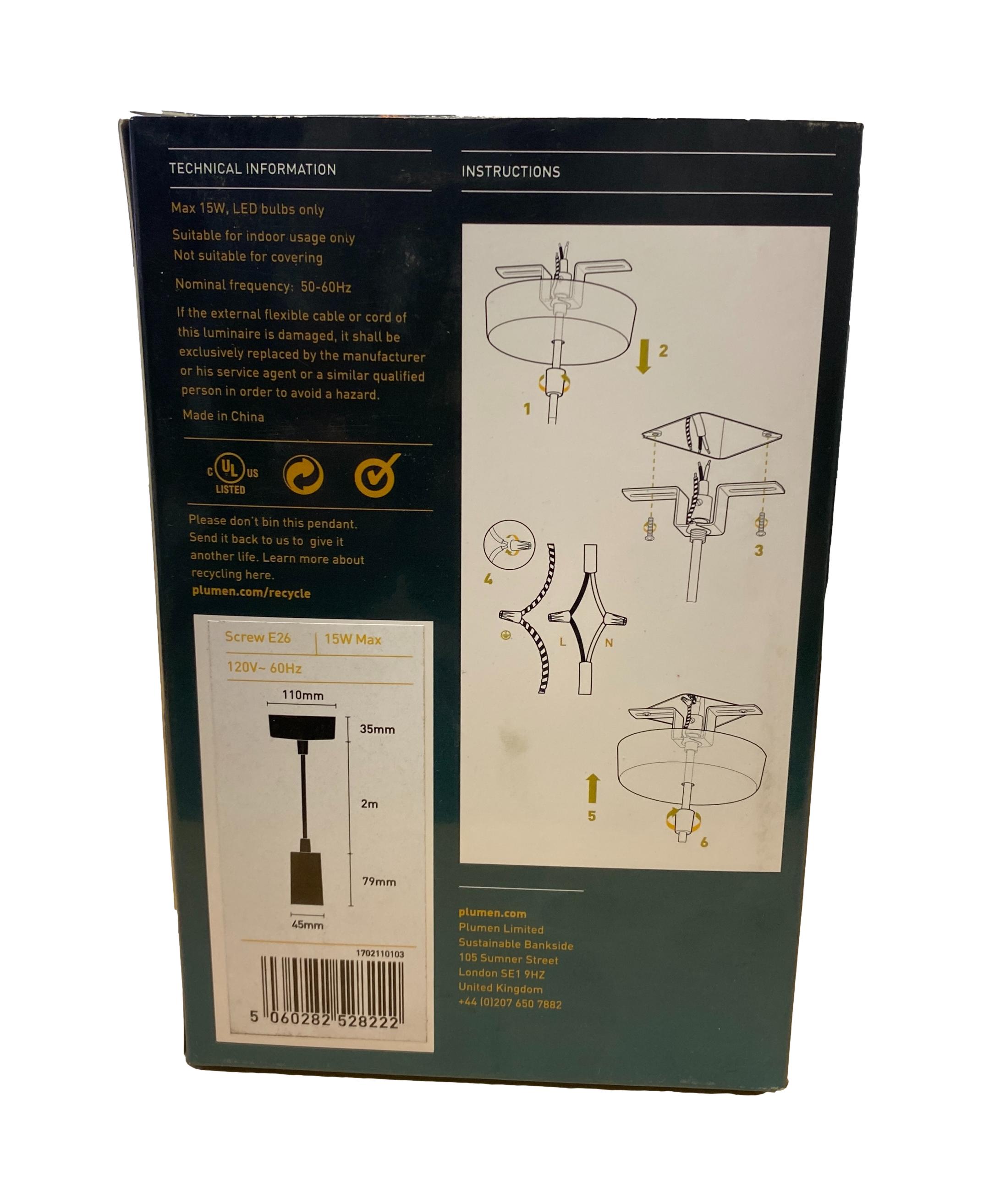 Plumen Pendant Drop Cap | Screw E26 | Designed to fit both Plumen & Other Brands