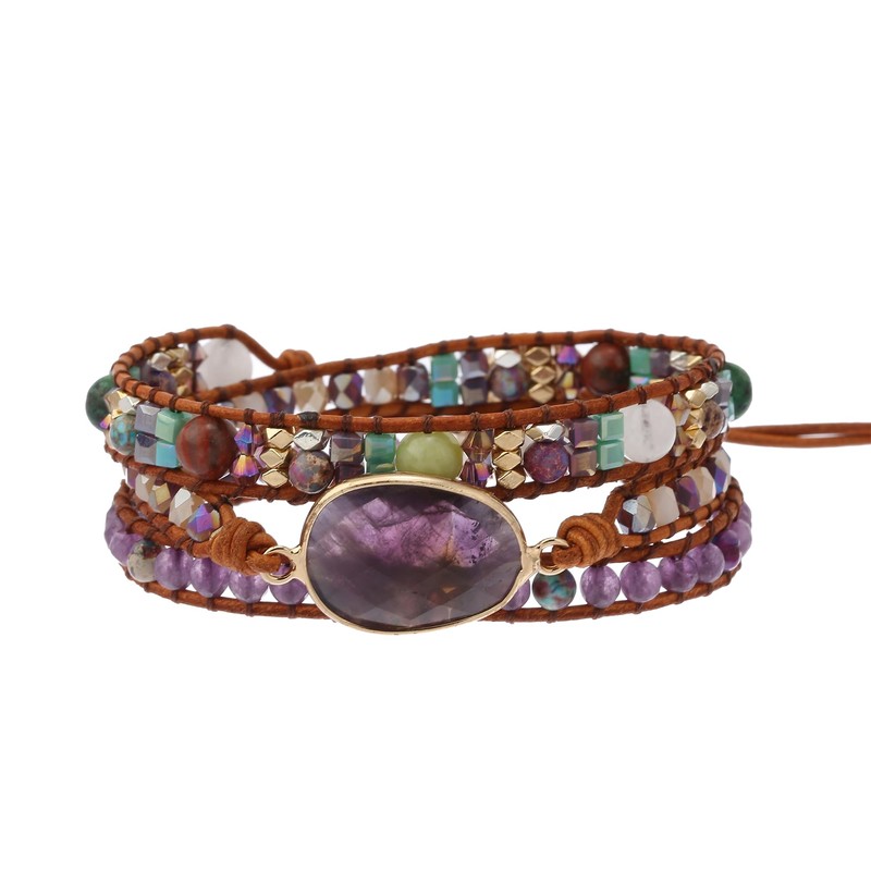 - Genuine Amethyst Stones: This wrap bracelet is made with genuine amethyst stones, which are known for their beautiful purple hues and healing properties.