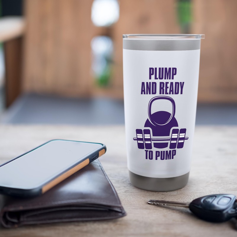 Plump and Ready to Pump funny gym barbell kettlebell Stainless Steel Insulated Tumbler