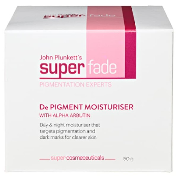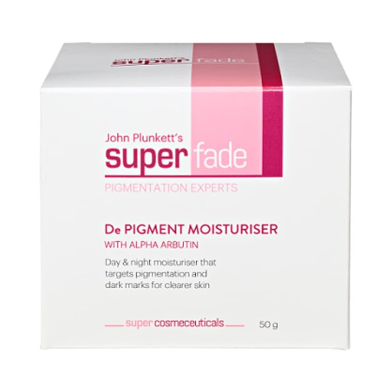 SuperFade De Pigment Moisturiser is a day and night moisturiser for most skin types. It contains potent active ingredients that work synergistically at multiple levels to target dark marks and pigmentation with less irritation.