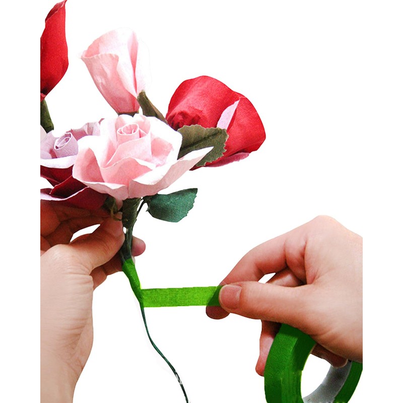 - Made of crepe paper coated with sticky materials, our floral tape has strong elasticity, light weighted and flexible to use. Easy to tear and cut. This floral tape is an excellent choice for floral arrangements, binding silk flowers, beaded flowers, wedding bouquet and craft project
