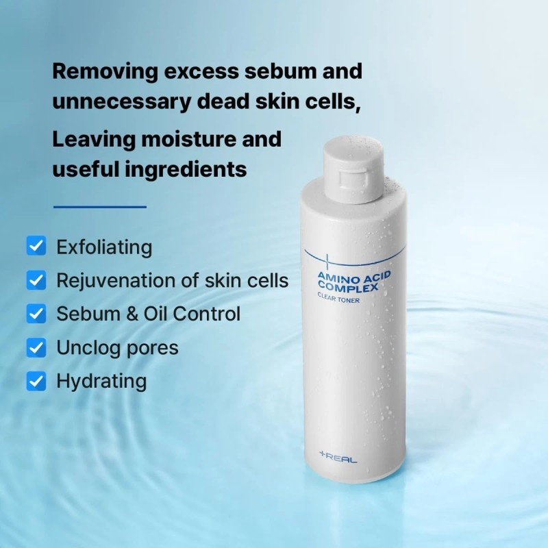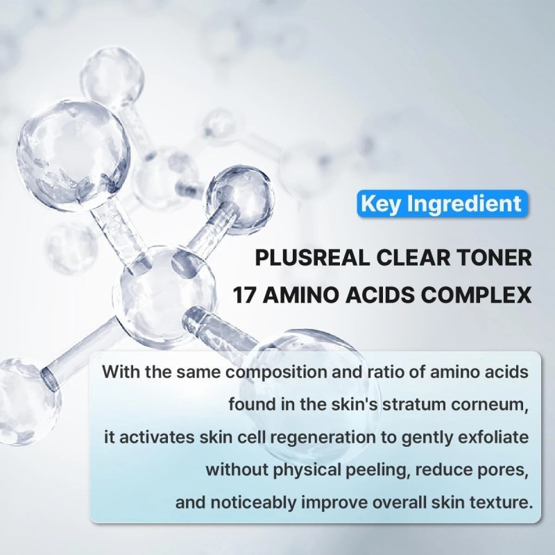 PLUSREAL Clear Toner, 8.45 fl.oz.|Gentler Exfoliating Face Toner for Sensitive Skin|Skin Wastes, Sebum and Oil Control|Frangrance Free, Alcohol Free, Cruelty Free, Vegan, Korean Skincare